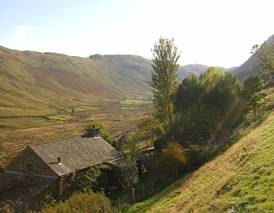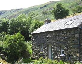Traditional stone and slate exterior dating from 1756. Restored in 1997, with a simple and thoughtfully designed interior. Perfect for two people. Bright and airy in summer; warm and cosy in cold weather, with a powerful wood-burning stove in addition to simple electric heating. Double height living space with very comfortable sofa and armchair, eating area, and good radio/CD hi-fi. Well-appointed kitchen with electric cooker, fridge, microwave, electric kettle and toaster, sink, and ample cooking equipment, crockery and cutlery. Shower-room with spacious mains-pressure shower and plentiful hot water, basin and WC. A gallery bedroom above the kitchen and shower-room overlooks the living space; twin beds can push together for one large very comfortable double. Views directly onto fields and fells and through the bedroom roof-light to the stars. Situated on the fell side in our garden, a stone’s throw from our house, with the next house about half a mile away. The cottage has its own private terrace & piece of garden. |